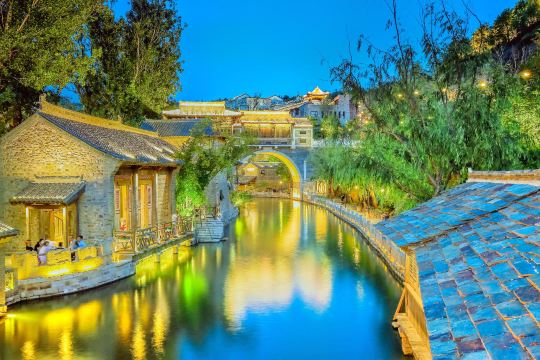 ▲ 古北水镇景好玩的景点:古北水镇温泉、长城音乐水舞秀、城上温泉馆、密云大戏楼、司马台长城。 古北水镇的夜景堪称一绝,小镇在星光照耀与灯光掩映中,宛如一个梦幻的世界。其中,水舞秀是夜游古北水镇不可或缺的重要一景。古镇里望京楼前的音乐喷泉每晚定时开启,喷泉的水柱随着音乐灯光摆动,不时还冒出耀眼的火光,与背后俊美的长城交相辉映,呈现一场视觉盛宴。