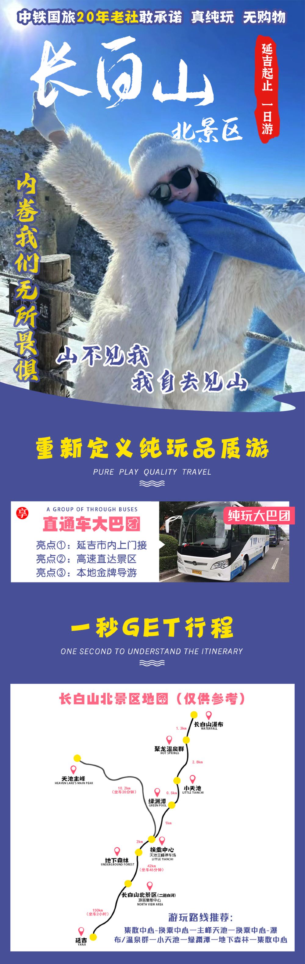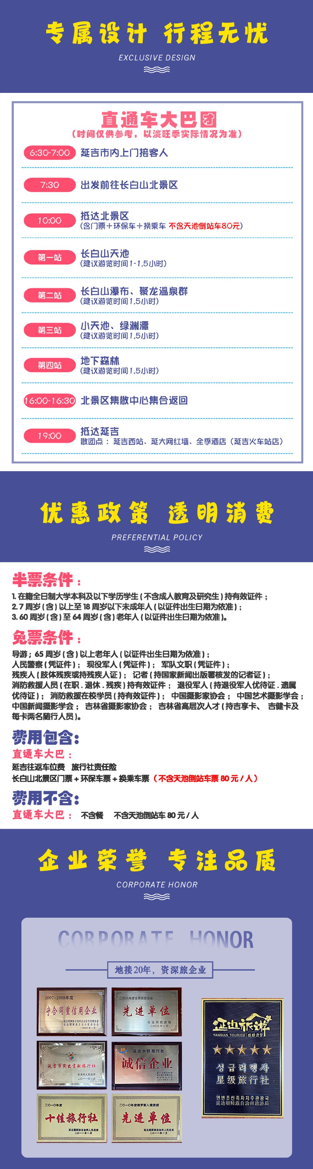 温馨提示:长白山天池为自然景观,天池是否开放景区都是当天临时通知,主峰天池天气变幻莫测,导致天池说开就开,说关就关。我社无法预测,天池关闭景区其他景点正常游览!如有变动提前一天17:00之前无损退改,当天无法退款!!!!!敬请谅解!!!!