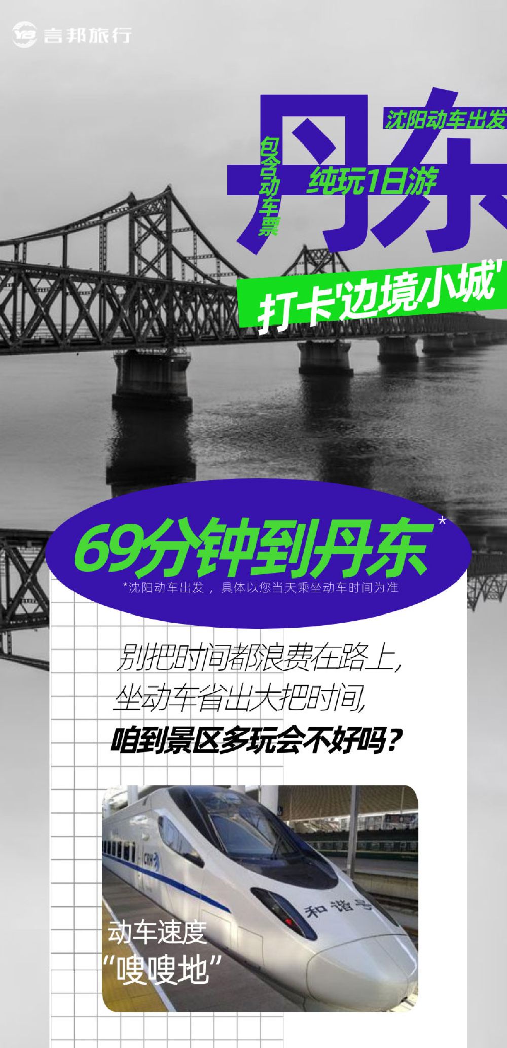 沈阳出发含沈阳丹东往返动车/高铁二等座,丹东站接送