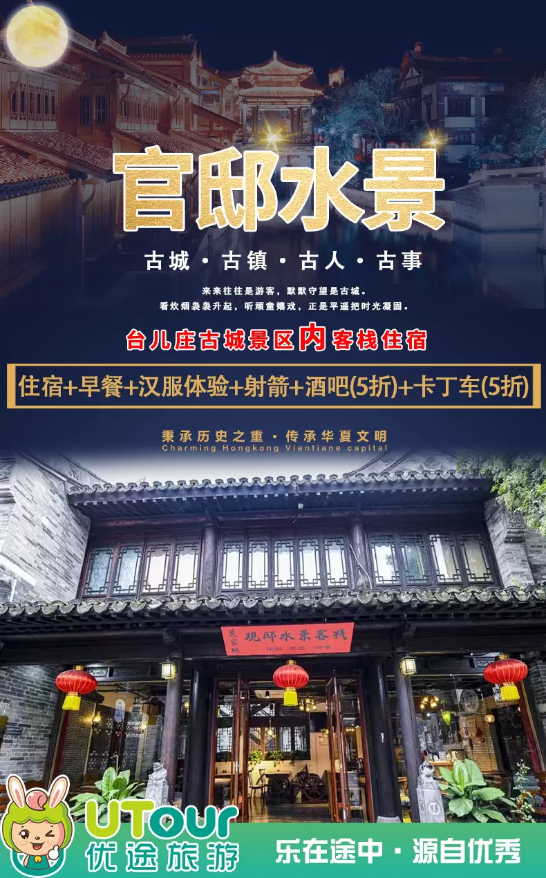 【酒店套餐】枣庄台儿庄古城内酒店住宿丨官邸水景客栈+早餐+台儿庄古城门票(可选)