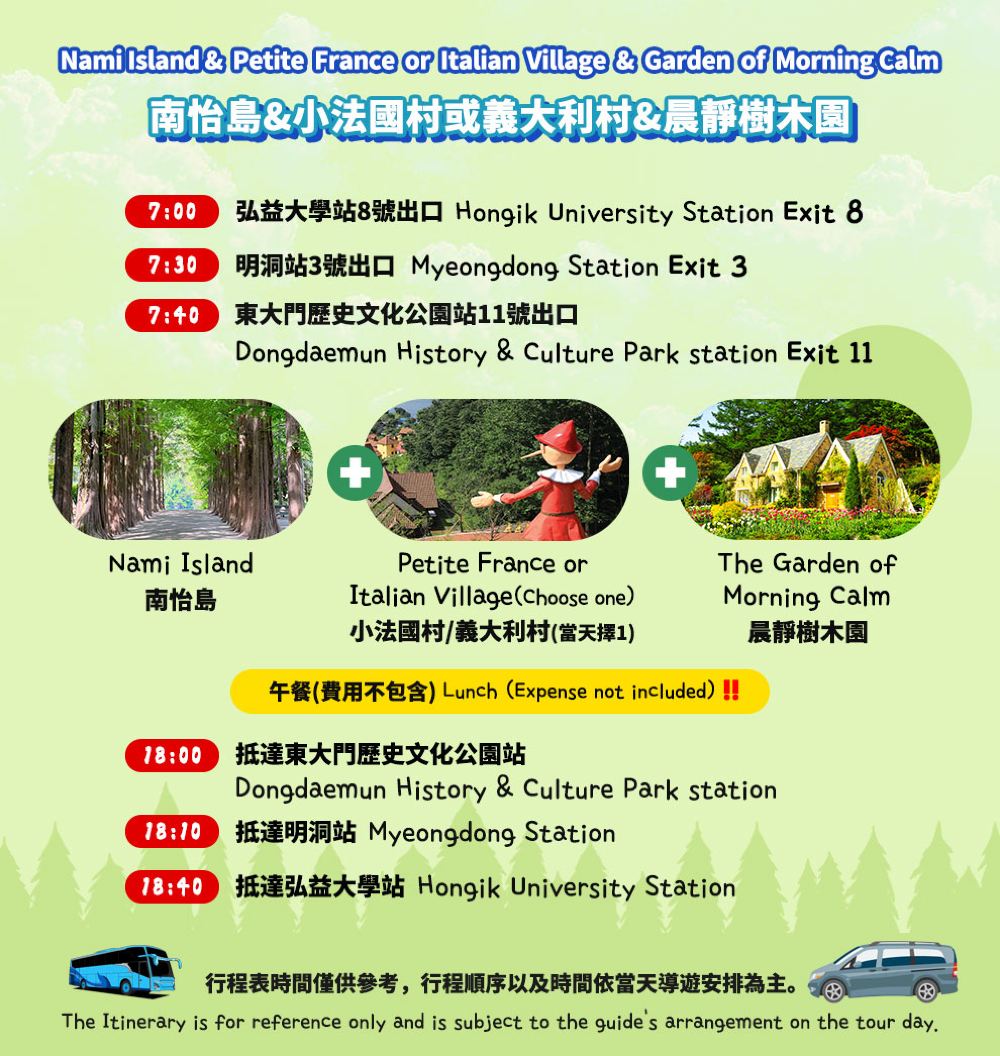 南怡岛+小法国或义大利村+早晨宁静花园一日游