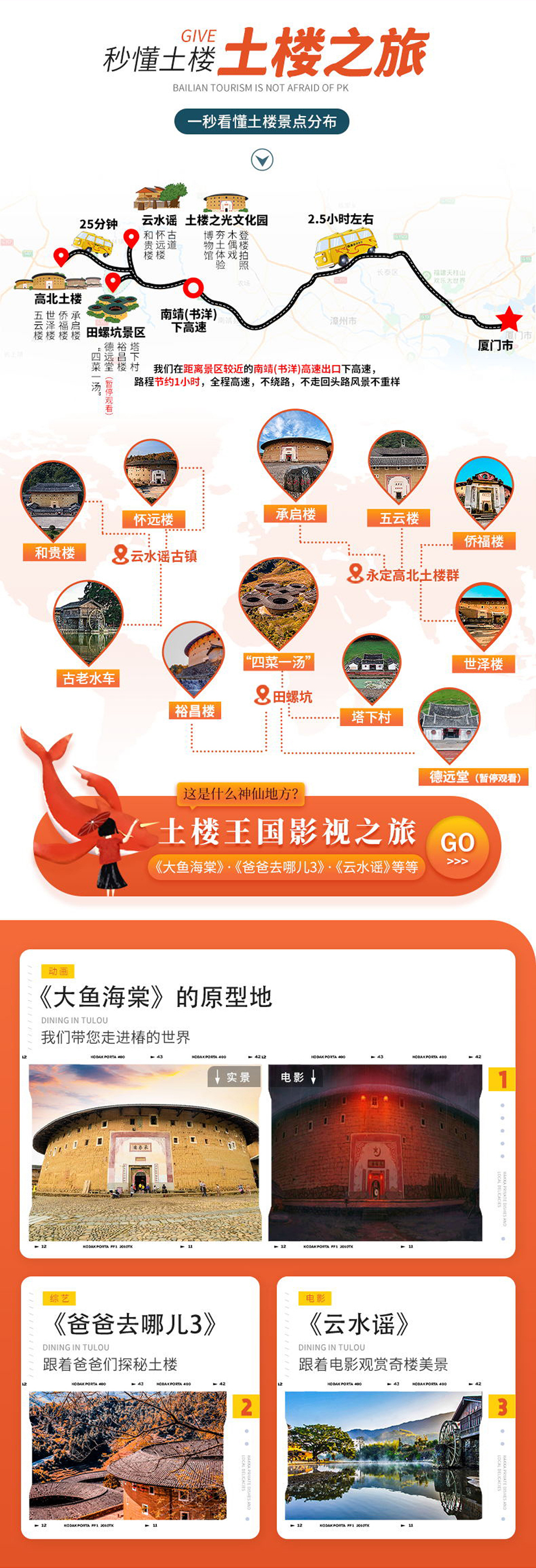 南靖土楼+云水谣古镇+福建土楼永定景区一日游【多线路可选|含门票+上门接送+景区讲解|可选田螺坑】