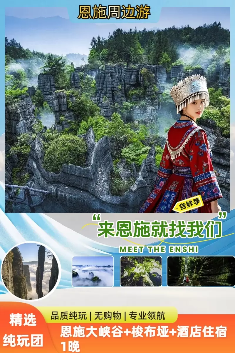 【酒店套餐】多人群可选丨恩施大峡谷+梭布垭+恩施市区舒适型酒店住宿两日游
