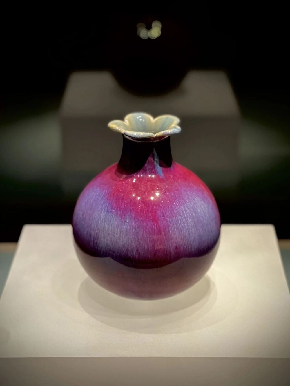 ▲ 色彩绚丽的陶瓷花瓶,独特的花口设计,瓶身渐变的粉紫色釉彩,尽显传统瓷器的优雅与魅力。