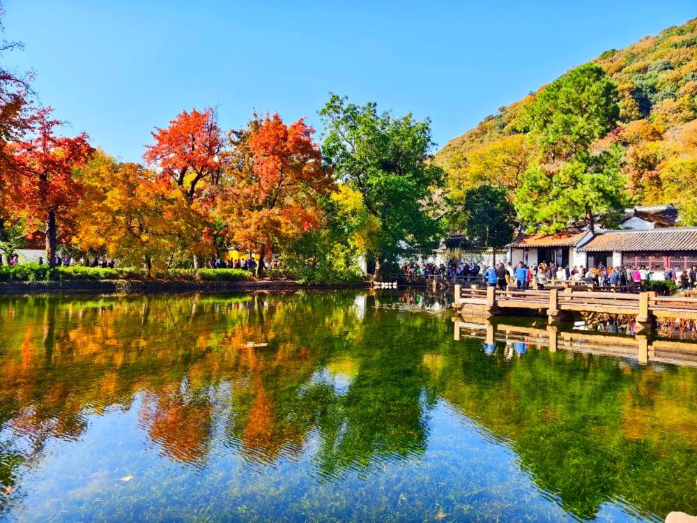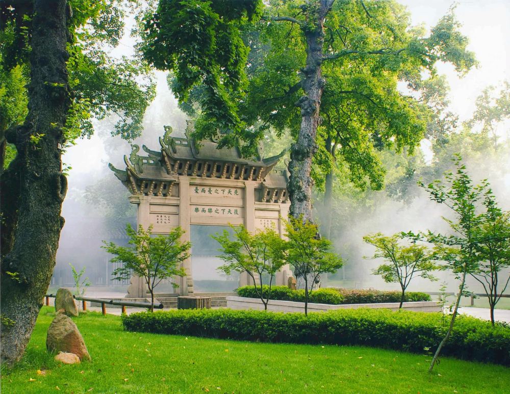 【天平山】山脚有好几个池塘,像个大公园,有小孩喜欢的脚踏船、手划船,全家出游可以坐在石凳或草坪上野餐。走过山脚的先忧后乐牌坊后,是范文正公祠、范仲淹纪念馆等建筑,里面介绍北宋范仲淹的生平和作品。从景区大门走到这里也就几分钟,参观过后,就可以沿旁边的山路登山。