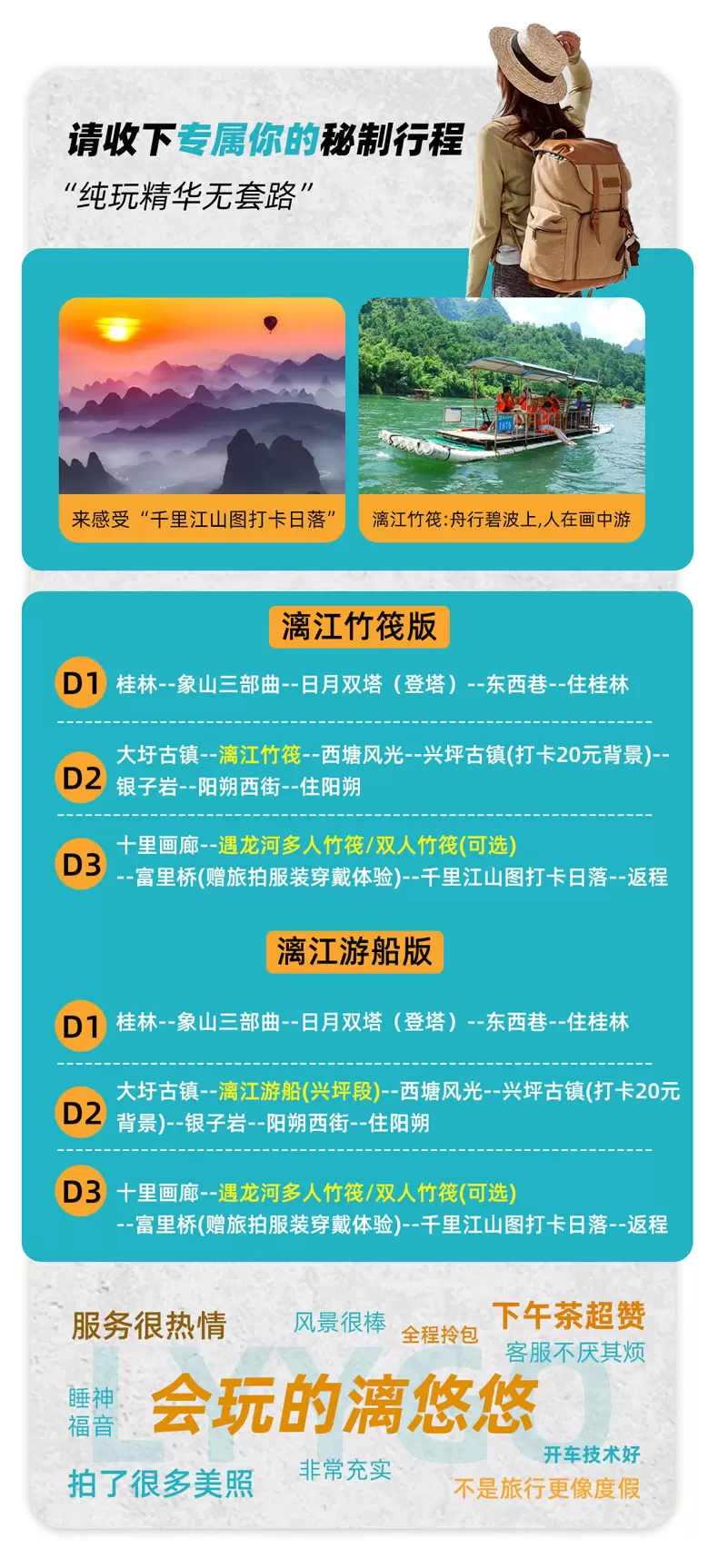 桂林阳朔+遇龙河景区+漓江精华游+十里画廊三日游【8人团·漓悠悠纯玩·赠旅拍服装·寻梦山水|5A漓江+双古镇】