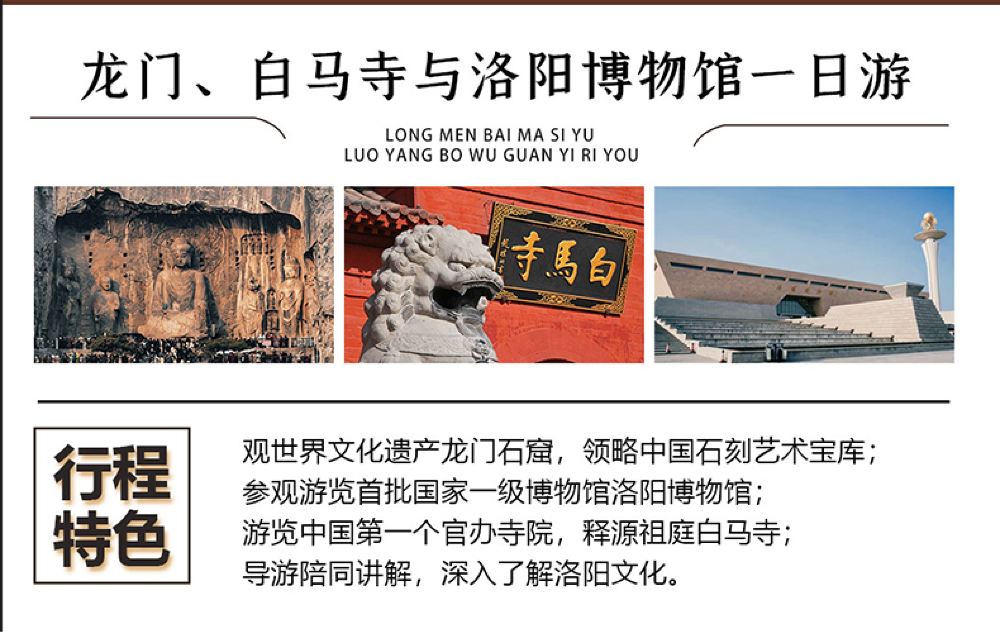 白马寺+博物馆+龙门石窟一日游【纯玩不进店】