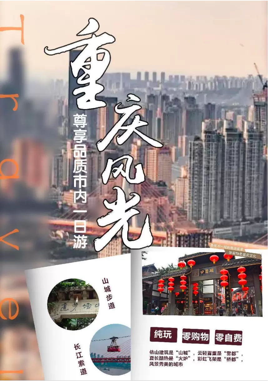 长江索道+WFC观景台+戴家巷老街+李子坝轻轨站+白公馆+渣滓洞+磁器口古镇+洪崖洞民俗风貌区一日游