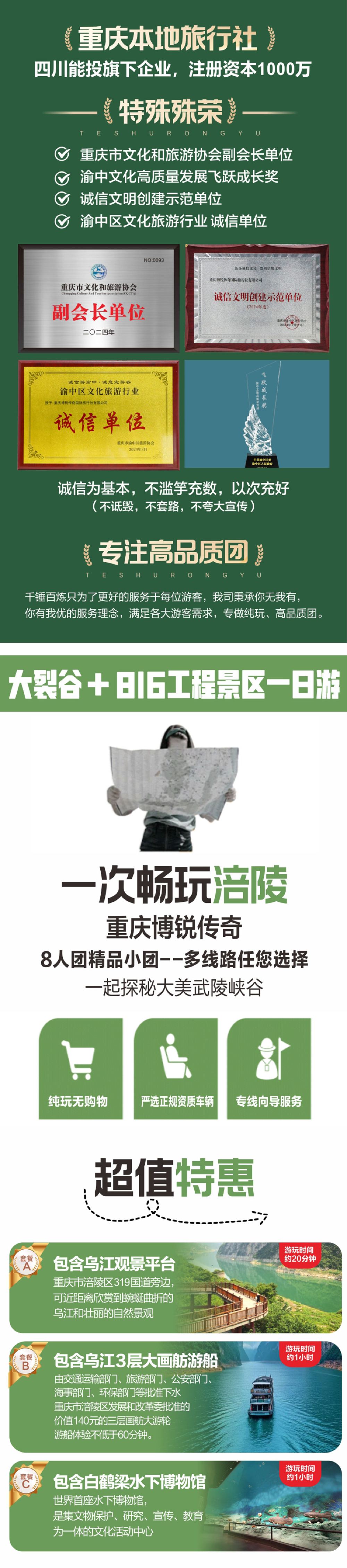 武陵山大裂谷+816工程景区一日游【8人团丨多线路可选】【【多样玩法】多去一个景点,套餐A:乌江赤壁观景台;套餐B:乌江画舫游船;套餐C:白鹤梁水下博物馆!】