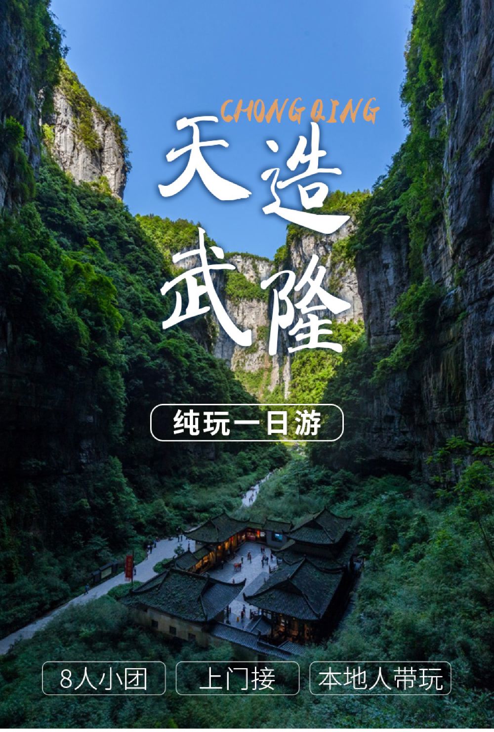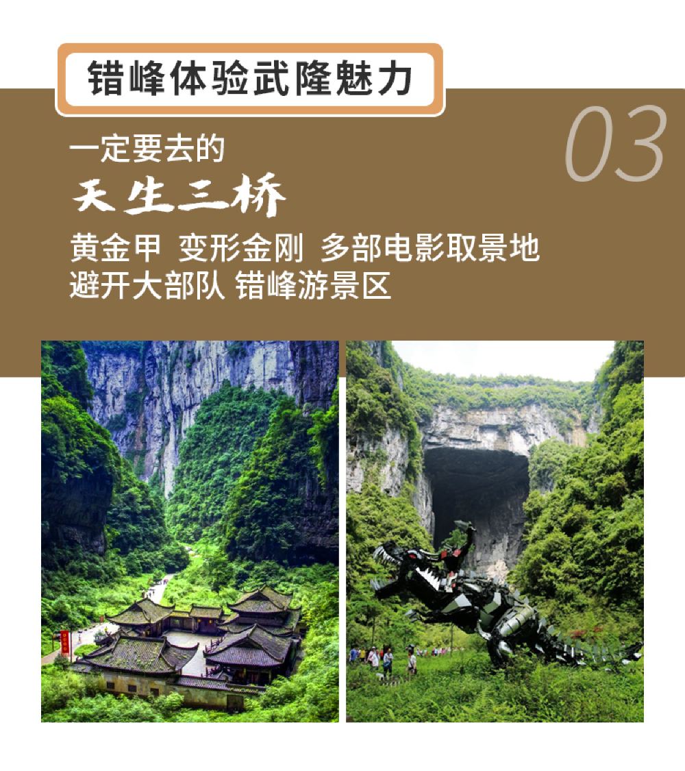 武隆天生三桥+龙水峡地缝+乌江画廊一日游 8人纯玩小团上门接【纯玩无购物,8人内拼车小团,商圈酒店上门接,不用自行前往集合】