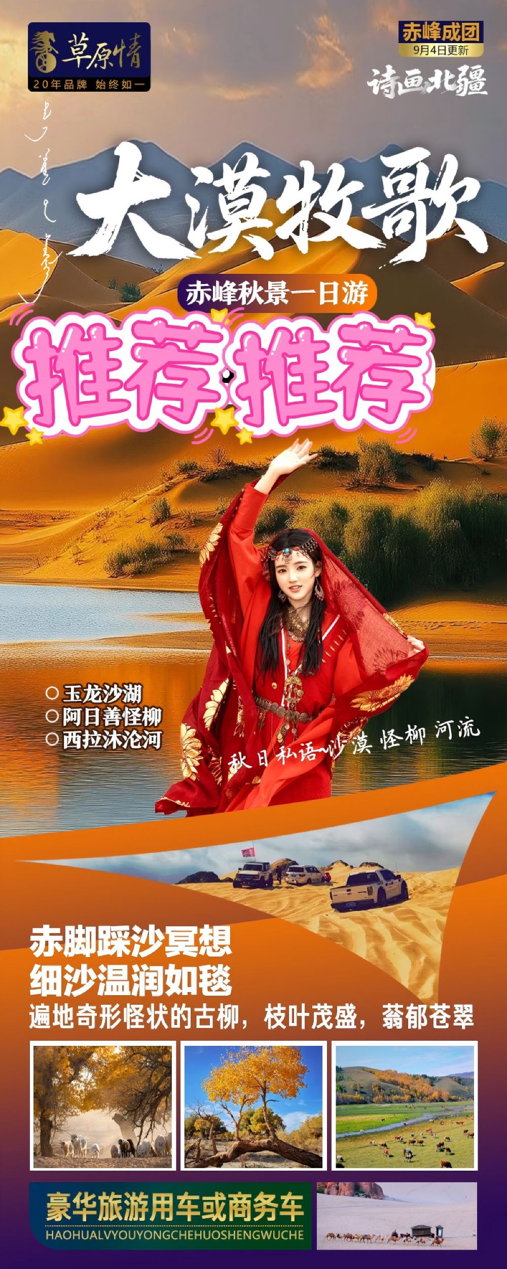 4-8人团丨玉龙沙湖+阿日善怪柳一日游丨纯玩,可选拜龙观光车【:赤脚踩沙冥想,细沙温润如毯,闭眼聆听风声,感受自然疗愈之力。】