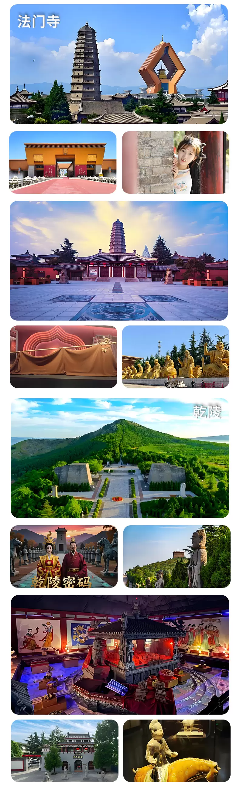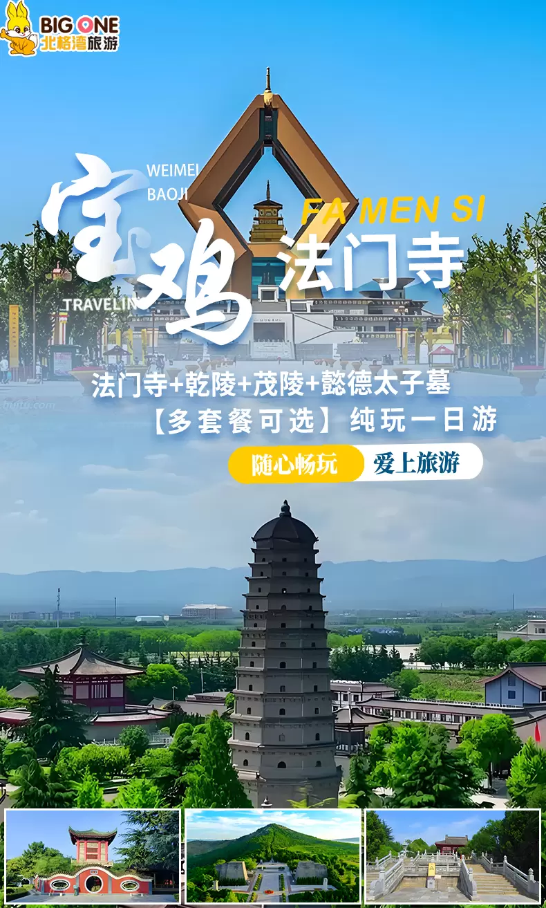 咸阳乾陵+宝鸡法门文化景区+汉武帝茂陵一日游【西安出发-含午餐-乾县四宝|优秀导游|二环内可接|纯玩无购物】