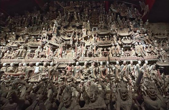 ▲ 水陆庵是一座四合院式的建筑,前有5间山门,南北两边各有厢房13间,院中有3间中殿,西有5间大殿,是一座完整的佛家寺院,整个院落显得清幽古朴。彩色泥质壁塑是水陆庵的精华所在。隋唐时,水陆庵本是的悟真寺内的水陆殿。 [3]唐朝时,水陆庵达鼎盛时期,最多有1000僧众。宋代至元朝,水陆庵悟真寺开始走向衰落。明代嘉靖年间,秦藩王朱怀埢用五年时间修复,水陆庵被评为圣地,出现大量彩塑。水陆庵彩色泥塑有较高的美学价值和历史研究价值。