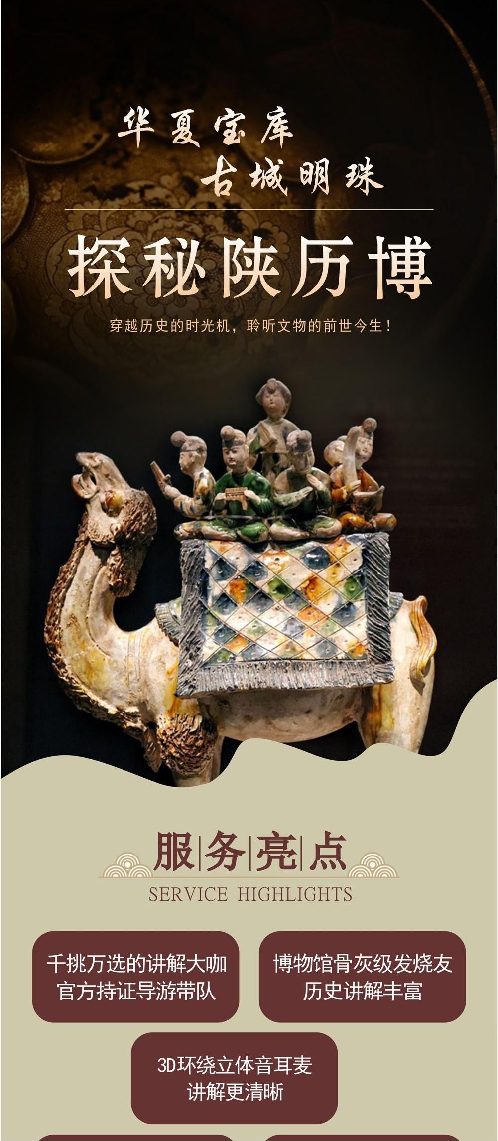 1、陕西历史博物馆【门票免费】,除单讲解套餐外,其余套餐下单默认帮忙预约基础馆门票,有预约不到的可能,具体出票以在线客服通知为准,望知晓!