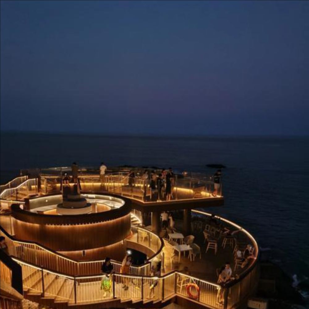 ▲ 惠州礁石酒吧:海浪与微醺的浪漫协奏 坐在天然礁石凿刻而成的露天吧台,脚下是翡翠般的海浪拍打岩石,溅起细碎水花。点一杯特调,看落日把海面染成金红色,耳边只有潮汐的韵律和慵懒的爵士乐。夜幕降临时,暖黄的灯光亮起,浪声成了背景音,仿佛整片海都是你的私享领地。 开放时间:10:00-22:00(建议日落前1-2小时前往,光影很美)。 注意事项:需提前预约,旺季一位难求;礁石湿滑,避免穿高跟鞋;海风较大,可带件薄外套。来这方山海之间的秘境,让酒精与海风一起温柔上头。