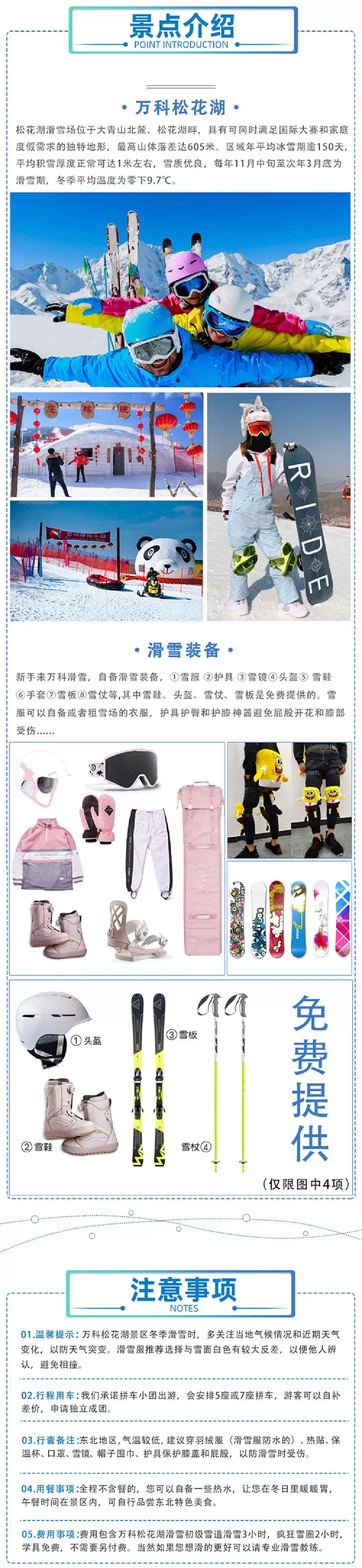吉林市万科松花湖度假区一日游【万科滑雪场·2-6人小团·含雪票】