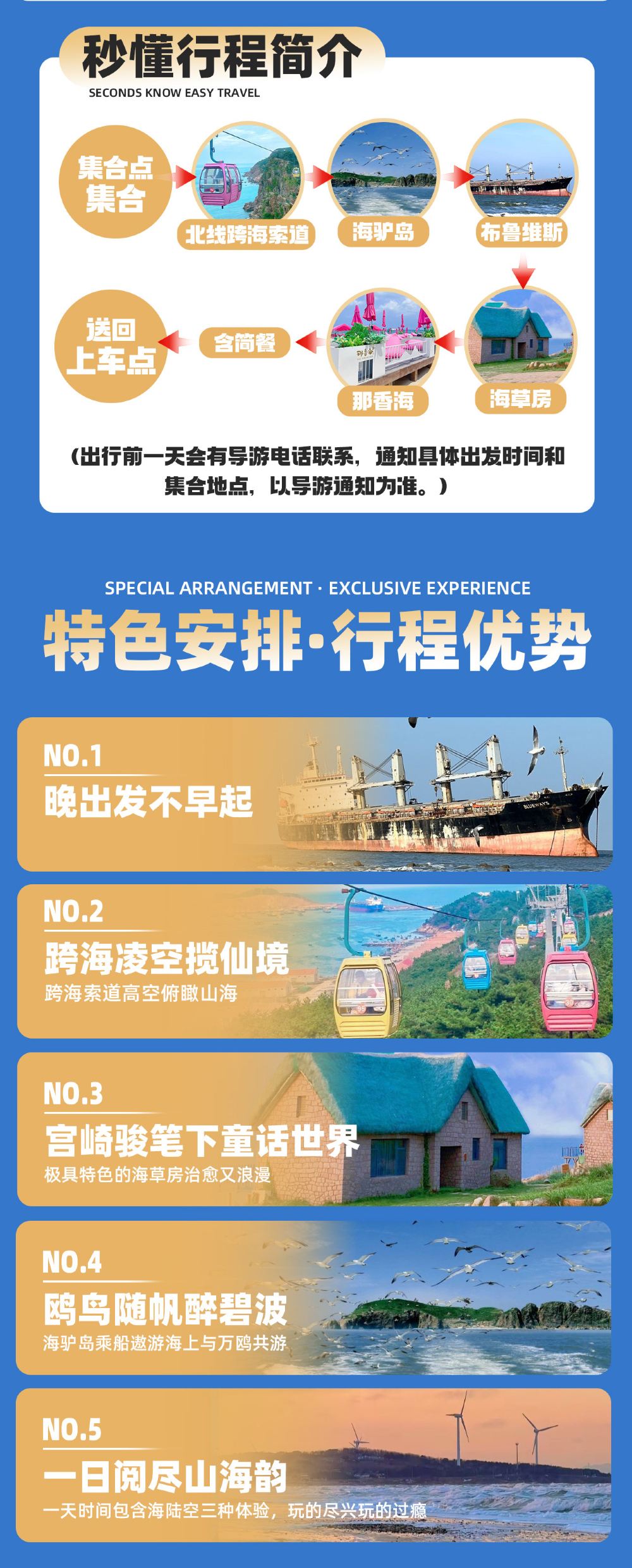 威海跨海索道+海驴岛+布鲁维斯号+那香海+海草房一日游【口碑优选:任何自费项目,纯平个人意愿参加,绝无强制消费行为,无任何隐形消费。品牌口碑至上。】