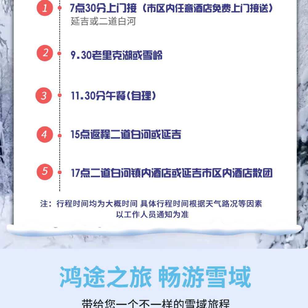 本品可选延吉出发或二道白河镇出发 免费上门接送