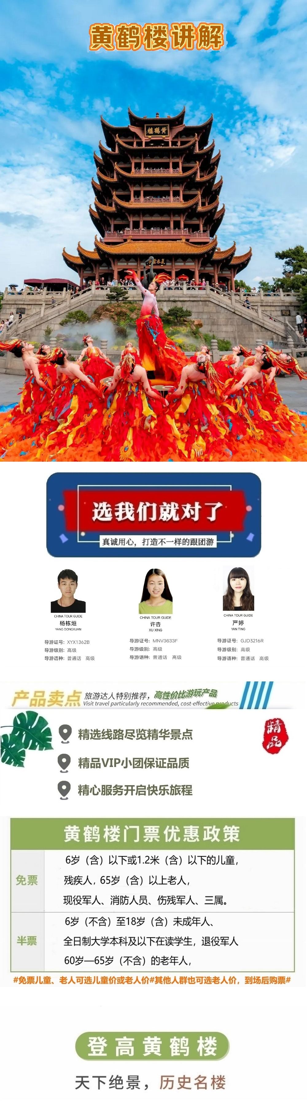 黄鹤楼+长江大桥+轮渡+江汉关半日游【网红打卡 、本土导游,好评无数。】