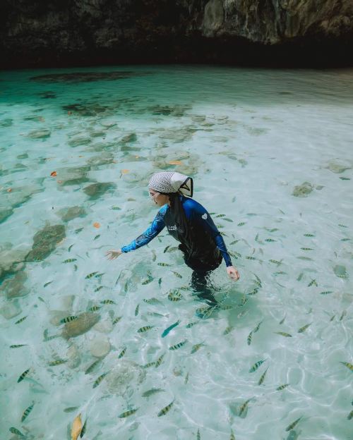 第三站:到“红岛泄湖”(hong lagoon),被高耸的石灰石悬崖包围成翠绿色的水域,看上去非常的美,清晰见底,悬崖之间的交汇处只有5米宽