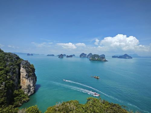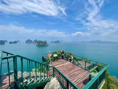 第二站: 到“洪岛”(HONG ISLAND)被树林茂密的石灰岩山包围,就像一间天然的房间,不论搭乘快艇还是长尾船前往,很难不被一种与世隔绝的静谧气氛所感染而放松心情,在红岛有一处观景台,可以俯瞰整个红岛(上下30分钟左右),午餐在红岛享用