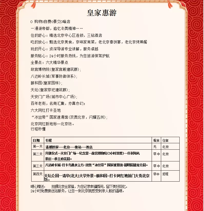 北京故宫博物院+八达岭长城+恭王府+颐和园+天坛公园+天安门广场四日游【24H接机/站纯玩无购物4天3晚】