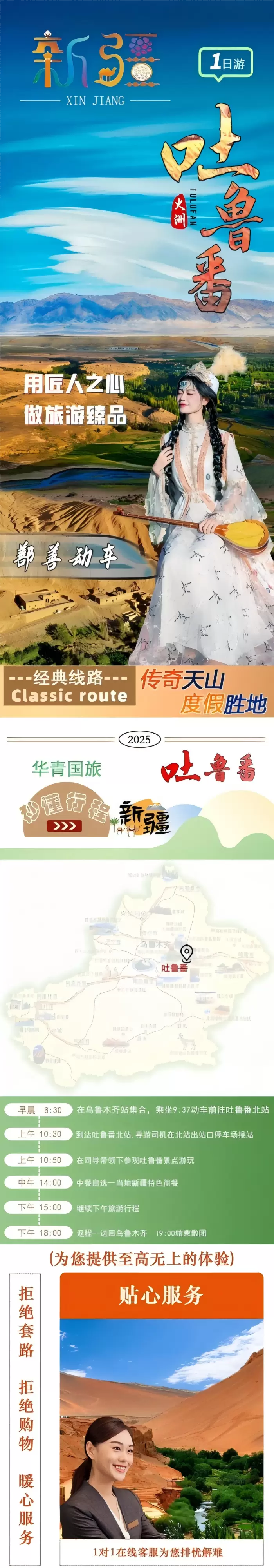 吐鲁番郡王府+吐鲁番葡萄沟+火焰山景区+交河故城+吐鲁番坎儿井乐园一日游【吐鲁番全景精华景点乌市动车往返】