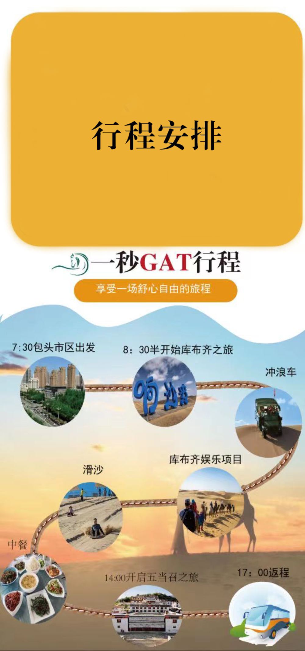 库布齐沙漠+五当召一日游【2-6人小包团 /14公里越野车】【[度假优选]:全程无购物、无自费,纯玩团!含14公里越野车】