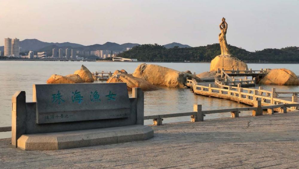 ▲ 珠海渔女是珠海市的标志性建筑物之一,位于香炉湾畔,雕像高8.7米,由70余块花岗岩打造。渔女形象颈戴项珠,腰系网具,双手高举一颗晶莹璀璨的珍珠,面容带着喜悦而又含羞的神情,象征着光明和奉献。