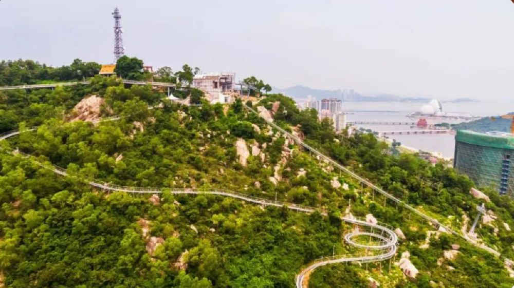 ▲ 石景山是珠海城市的福山,依山傍海,风景精致迷人,景山山顶公园是整个珠海超高、超大的观光休闲平台,山顶有渔女故事的男主角临山而立,有全长约10公里的【景山观光栈道】:东接景山公园和海滨公园西至圆明新园,南倚九洲大道,北邻翠微东路和柠溪路,实现山、海城自然交融。游客可选择乘坐公园内的石景山索道(缆车-团费不含,可根据需求自行购买,参考票价:80元/人)乘索道缆车徐徐登临山顶极目所至:北眺香港,南望澳门,放眼绿树成荫的珠海全貌,俯瞰近在咫尺的“香炉”、“渔女"和玉珠滴翠、蜿蜒海边的“情侣路”,山海交融