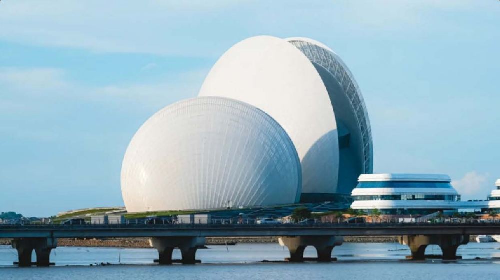 ▲ 中国建设在海岛上的歌剧院。其设计灵感来源于名画《维纳斯的诞生》,造型独特,宛如两颗日月贝,寓意“珠生于贝,贝生于海”体现了珠海的浪漫意境。