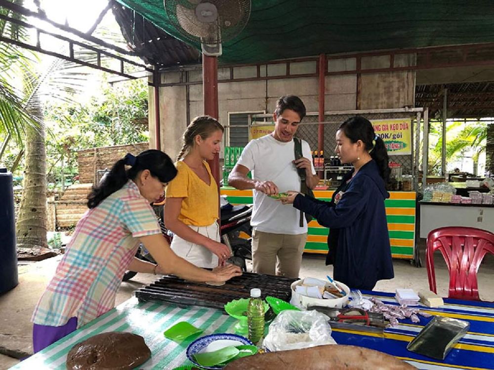 在当地工作坊中了解传统椰子糖的手工制作过程,这是湄公河三角洲的特色甜点