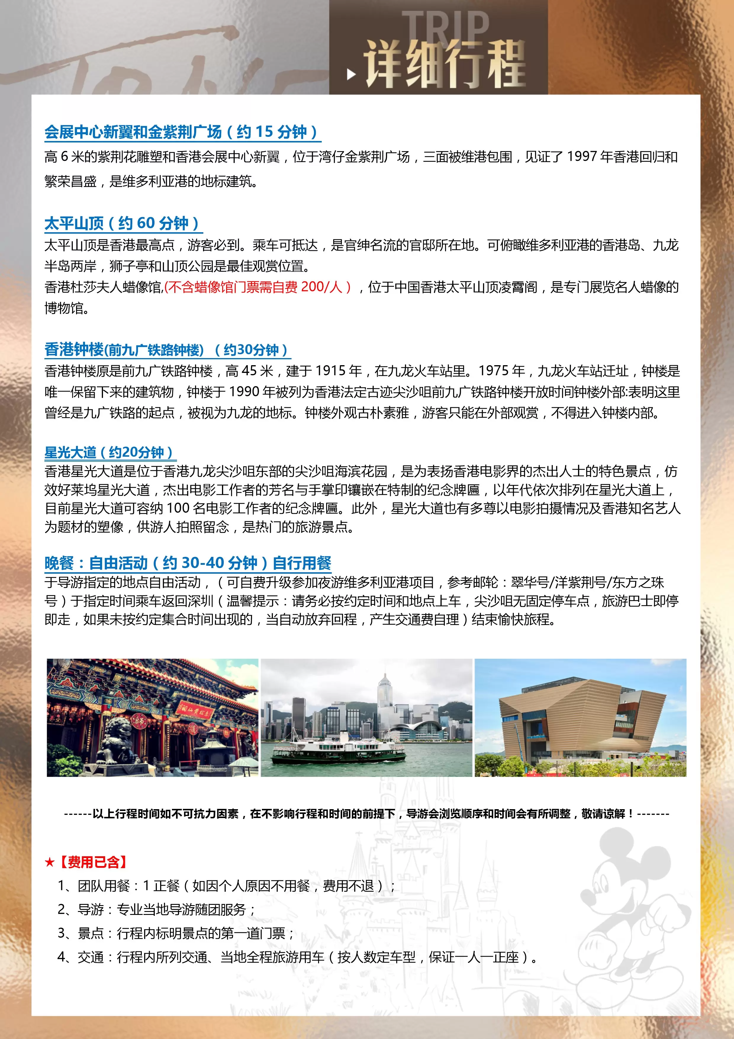 香港金紫荆广场+尖沙咀+天星小轮+太平山顶+星光大道一日游【广州出发】