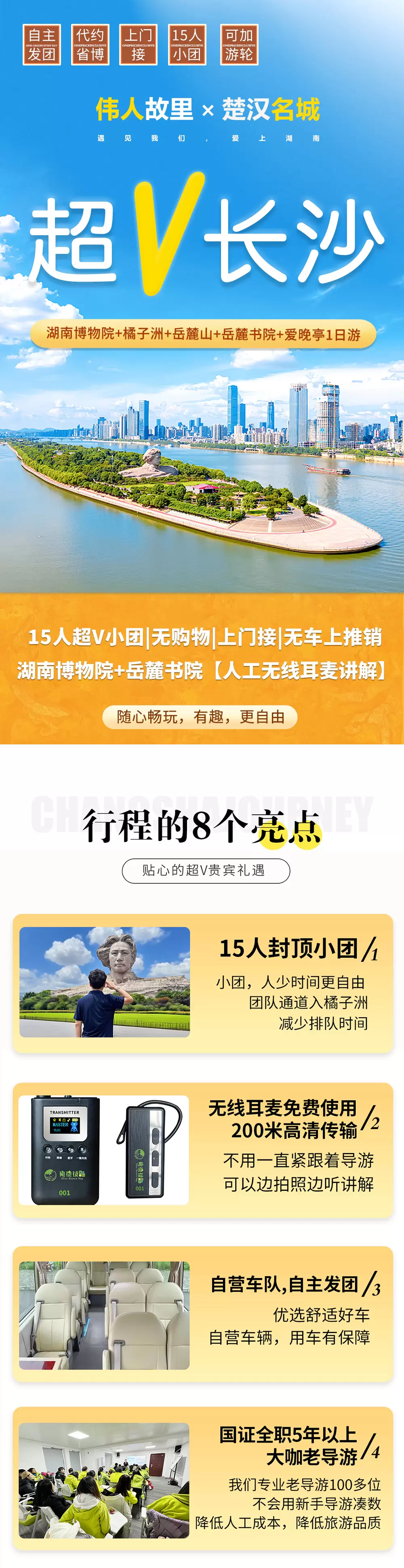 长沙湖南博物院+橘子洲景区+岳麓山+岳麓书院+湘江游轮一日游【15人超V小团上门接,纯玩0购物】