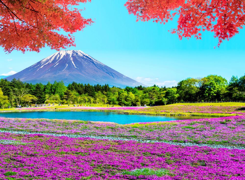 ▲ 【河口湖】河口湖以其富士山倒影的壮观景色而闻名。春季,湖畔樱花繁盛;4月中旬至5月,80万株芝樱绽放,宛如“地上彩虹”;夏季的香草节期间,薰衣草染紫湖畔;秋季枫叶美景迷人;冬季则是观赏富士山的好时机。