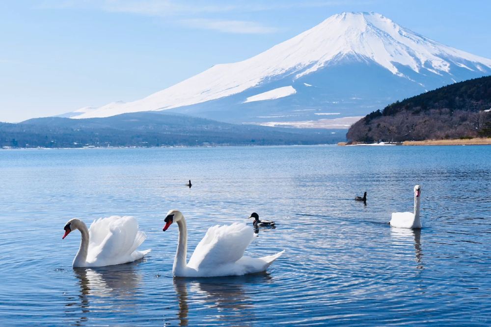 ▲ 【山中湖】山中湖是富士五湖之一,位于日本山梨县,以其迷人的富士山景观而闻名。每年2月至4月,天鹅会在此产卵,被称为“白鸟之湖”。游客常喂食天鹅,使它们与人亲近。