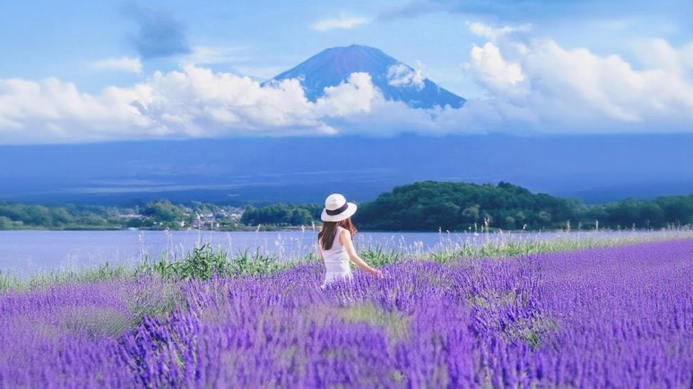 ▲ 【河口湖大石公园】大石公园以其广阔的薰衣草田而闻名,每年夏季,紫色的薰衣草盛开,将湖畔染上绚丽的色彩,形成一片紫色的海洋。漫步其中,游客不仅可以享受薰衣草的芬芳,还能欣赏到富士山的壮丽景观。