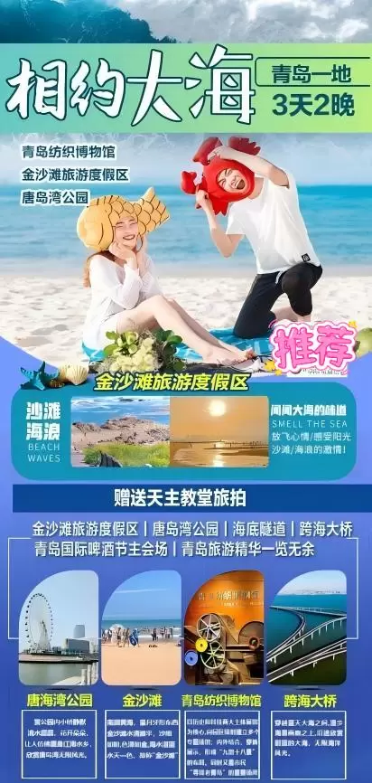 青岛栈桥+胶州湾大桥+唐岛湾滨海公园+五四广场三日游【纯玩丨24小时接机+赠送旅拍+打卡青岛地标丨相约大海】