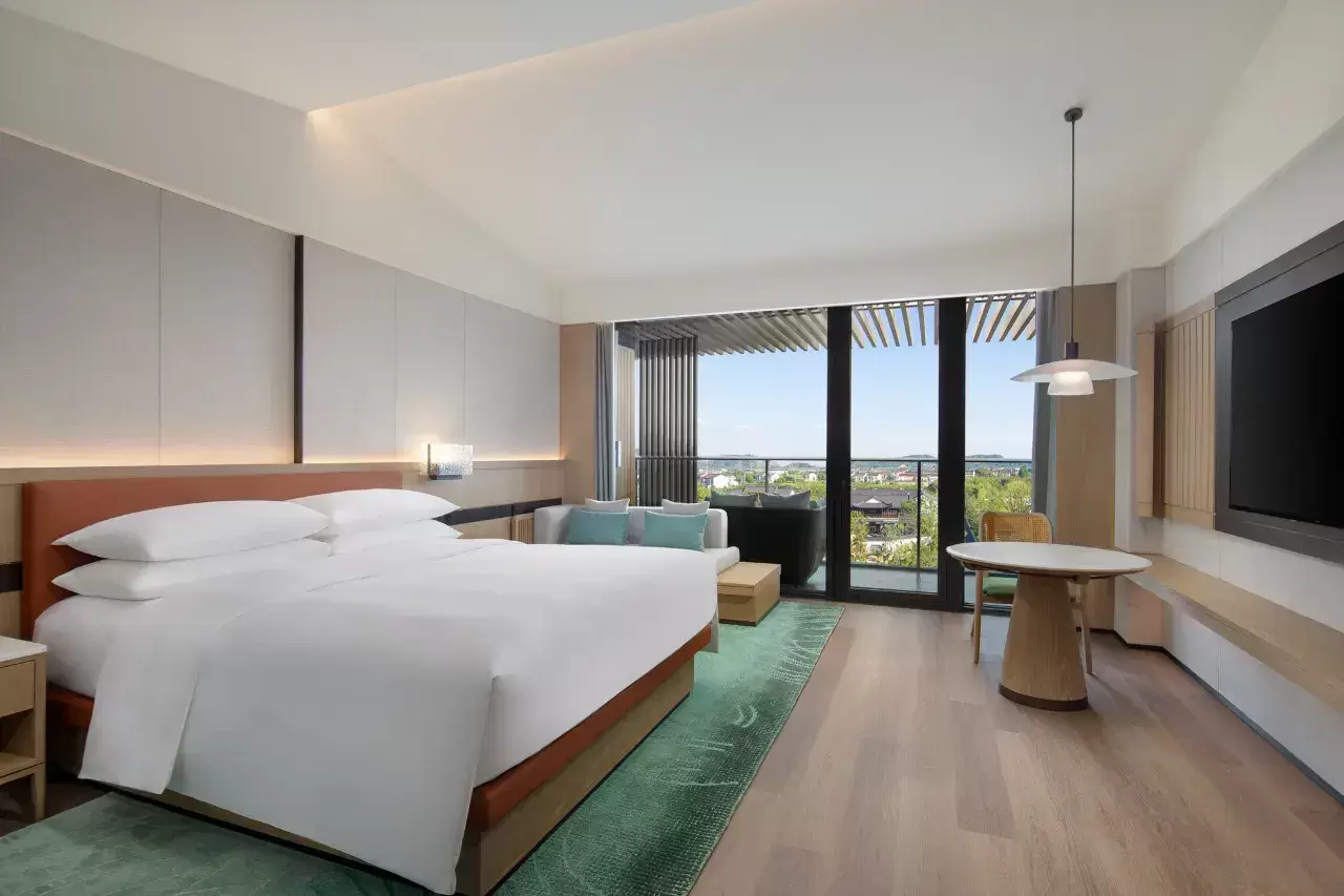 酒店是常州万豪旗下万怡度假型酒店酒店地处常州、无锡、江阴三市交界,位于舜山南麓舜水河畔,层层退台式的山居造型,是舜山小镇内的别致风景线。 每间客房都配有露台花园(205间)、室内外双泳池、路径交错的古典花园,纵享悠闲的度假时光,超2000m的会议及宴会空间、30多年历史的香港老饭店、创意潮流的全日制餐厅、设施完善的健身中心,满足宴会、娱乐、社交的多元化需求。 燃情并进、怡然自得的度假之旅,从常州万怡酒店开始!
