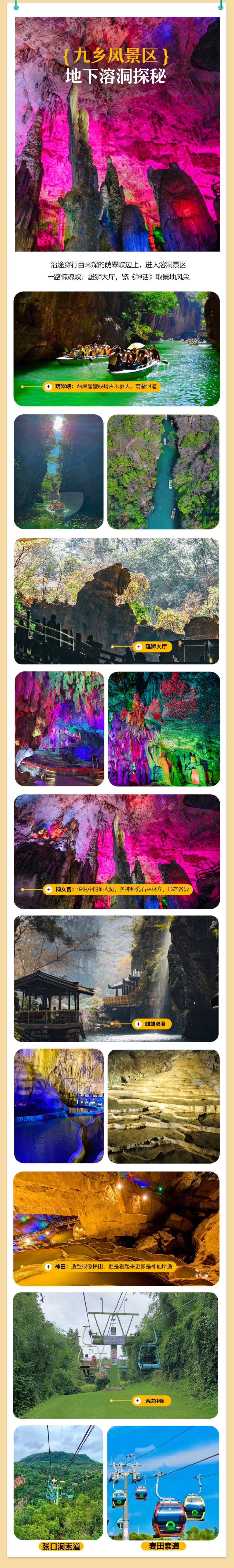 【温馨提示】亲爱的游客朋友本行程顺序是一个参考,具体游览顺序会根据当天导游安排而调整哦!!!九乡风景区全程不走回头路哦!!!