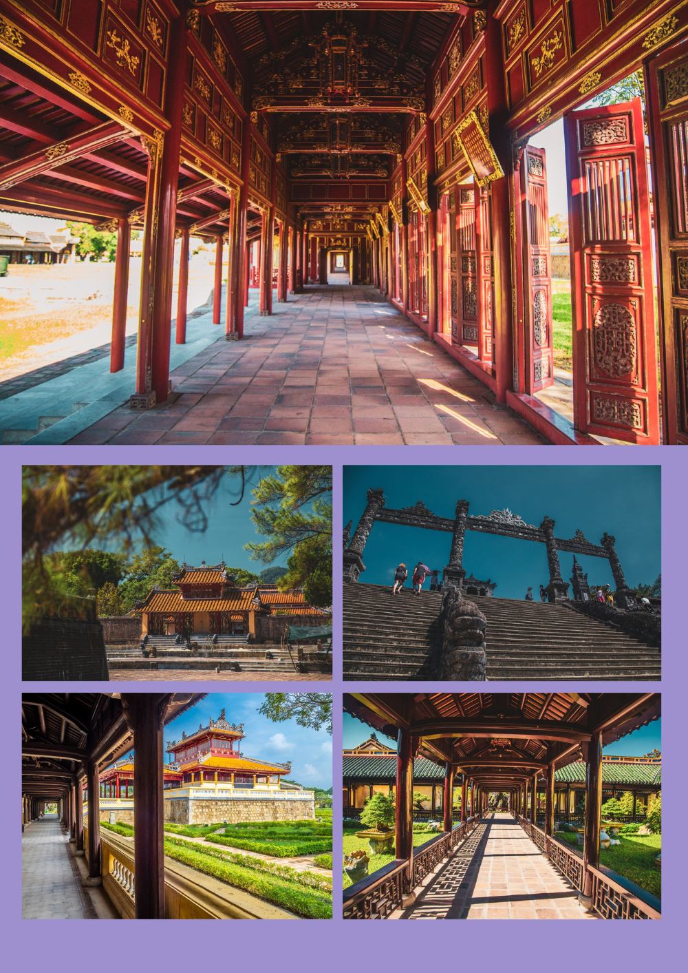 顺化作为越南阮朝Nguyen Dynastic 的首都共140年,至今当地仍保留皇城、寺庙和皇陵,顺化皇城更是越南第一个拿到世界文化遗产的地方(1933年)。皇城的建造与北京故宫有些相似,故有「小紫禁城」之称。