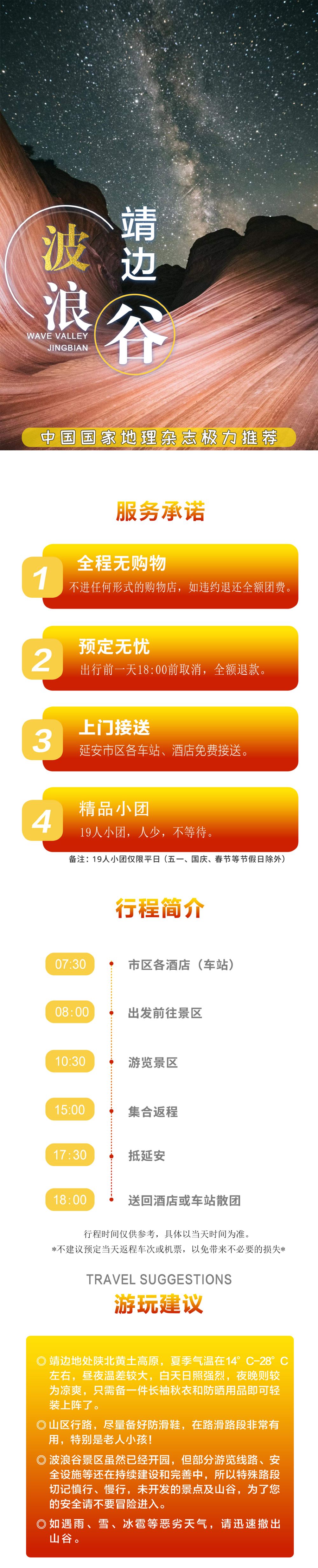 注意:榆林出发去波浪谷+波罗古堡2个景点,延安出发只去波浪谷1个景点。