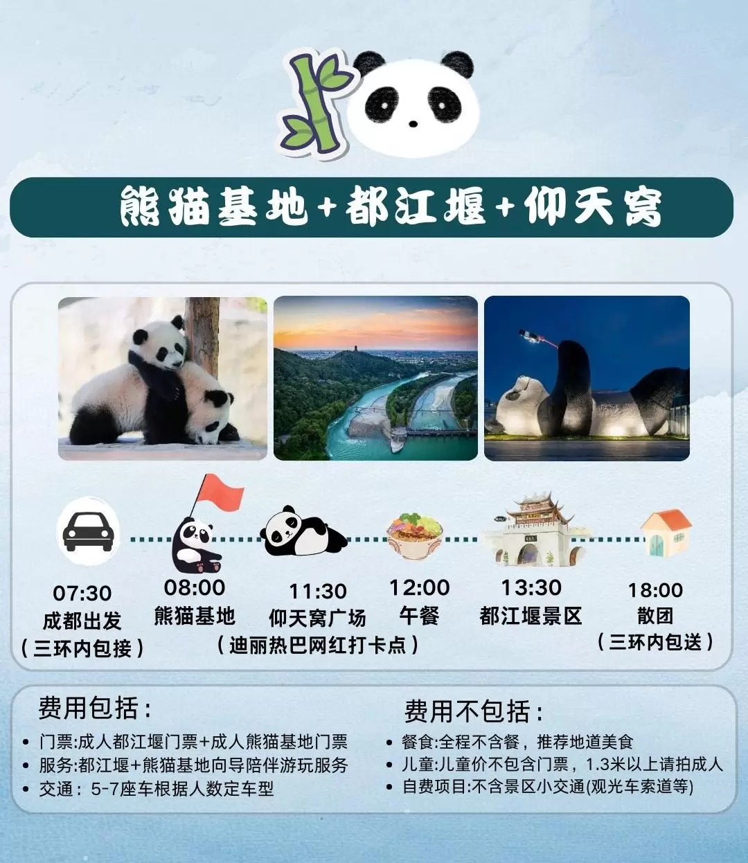 【拼小团】成都大熊猫繁育研究基地+都江堰景区一日游【2-6人精品小团|轻松玩转熊猫基地|三环内免费接送】