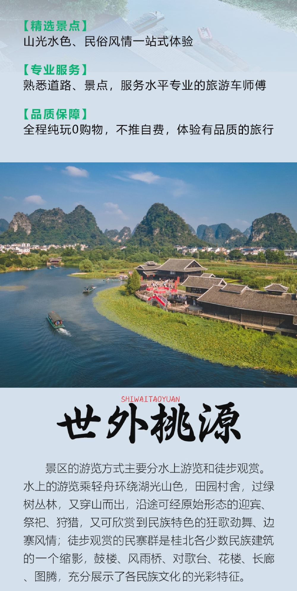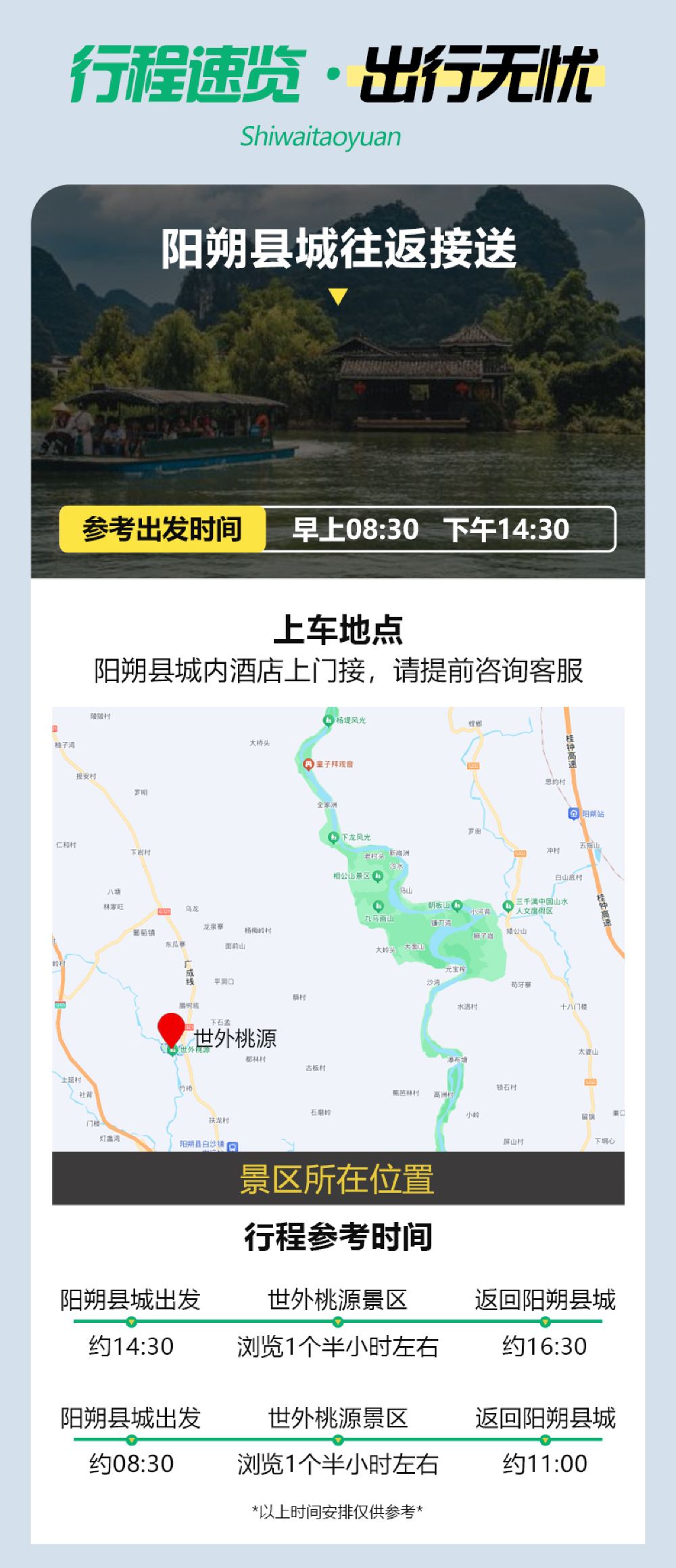 桂林阳朔世外桃源一日游【县城内酒店接送+一天两班】【阳朔县城接驳车接送直达】