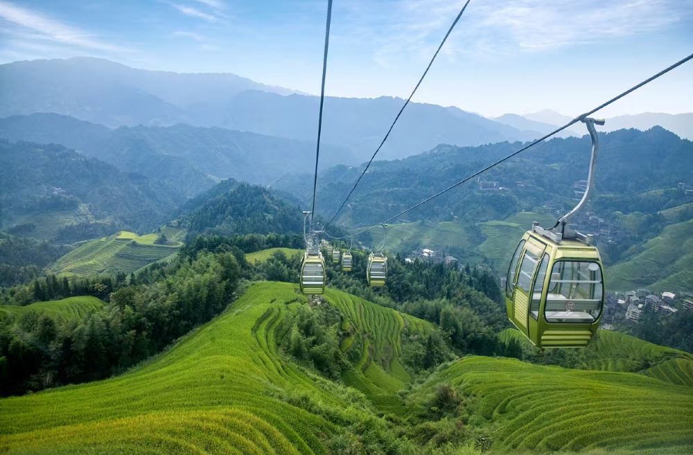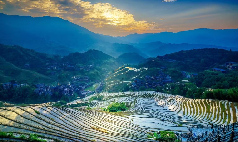 ▲ 龙脊梯田是一个规模宏大的梯田群,共分为金坑•大寨红瑶梯田观景区、平安壮族梯田观景区、龙脊古壮寨梯田观景区,面积共66平方千米。龙脊梯田属于南岭山地的越城岭,山岭绵延、层峦叠嶂、气势雄浑。当地海拔800—1500米的山地较多。