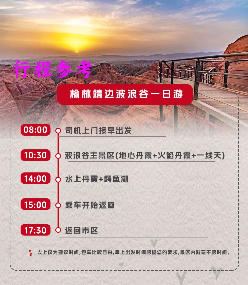 榆林出发波浪谷一日游【市区上门接送+纯玩无购物】【真正纯玩无购物让您安心游玩。】