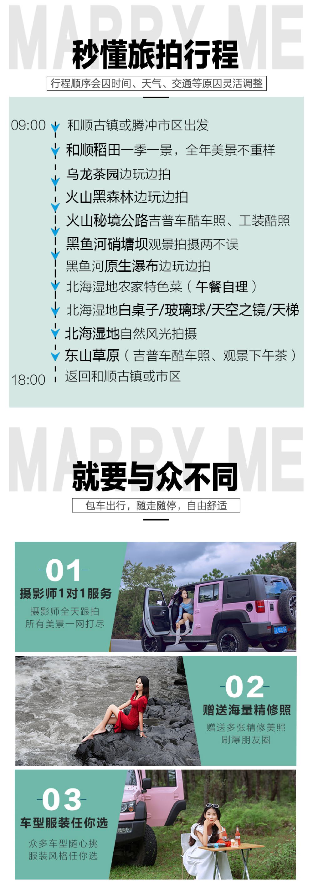 腾冲8小时酷车旅拍一日游【景点任选+底片全送+精修+服装】【摄影师开车带您边玩边拍,美景美照不错过】