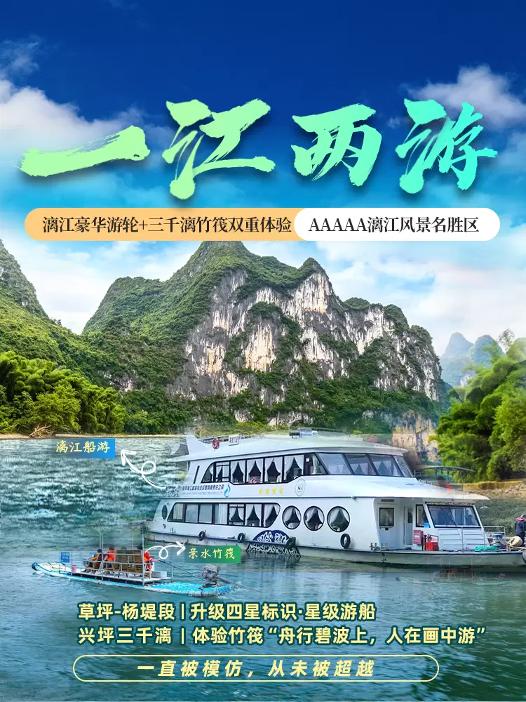 桂林漓江风景区+阳朔一日游【漓江四星豪华标识游船+竹筏漂流|二十元背景图】