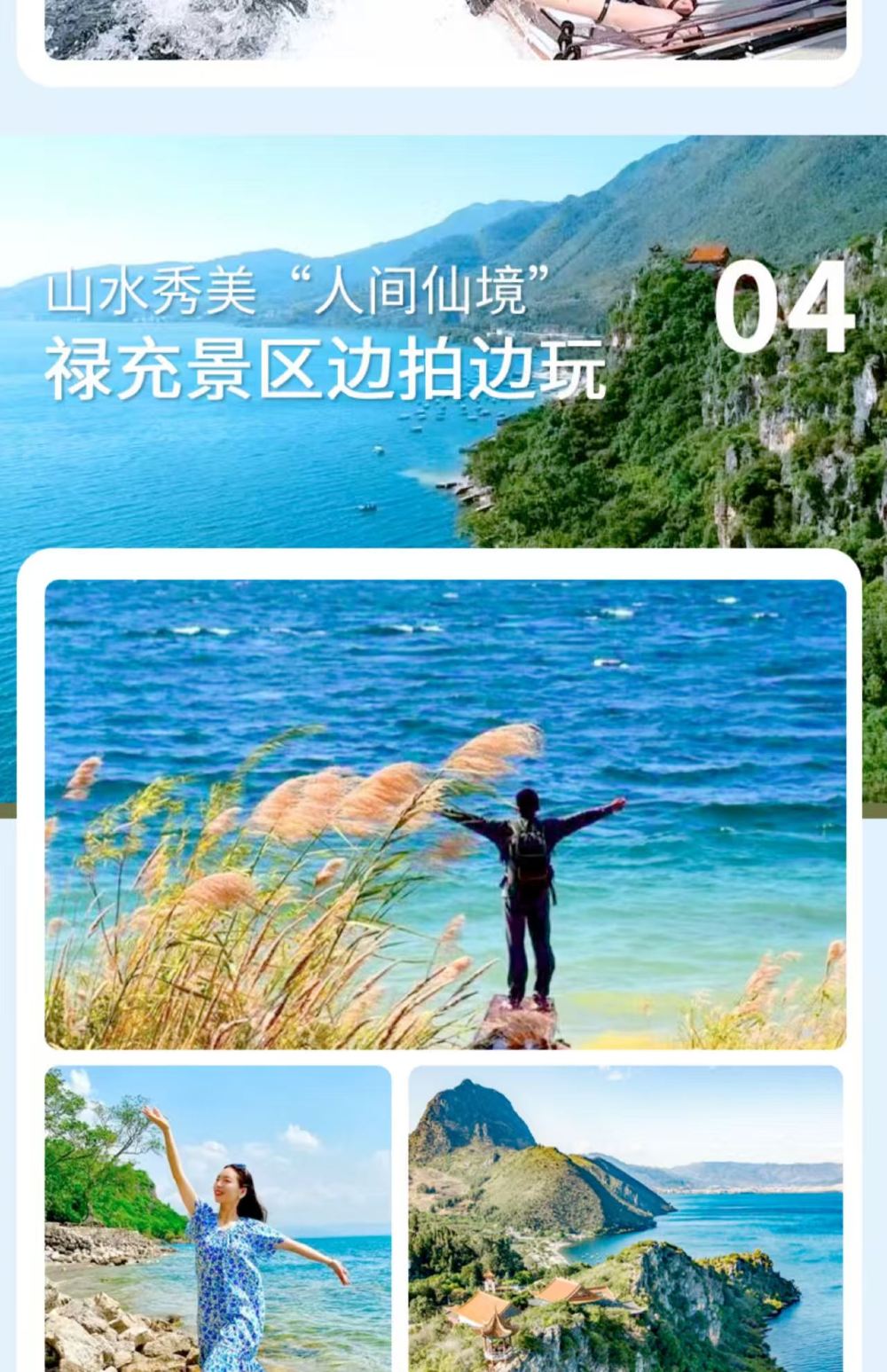 抚仙湖+禄充风景区+广龙抚海湾+粉红沙滩一日游(含游船)【品尝抚仙湖当地美食,特色铜锅鱼,洋芋焖饭,吃得安心玩得放心。】