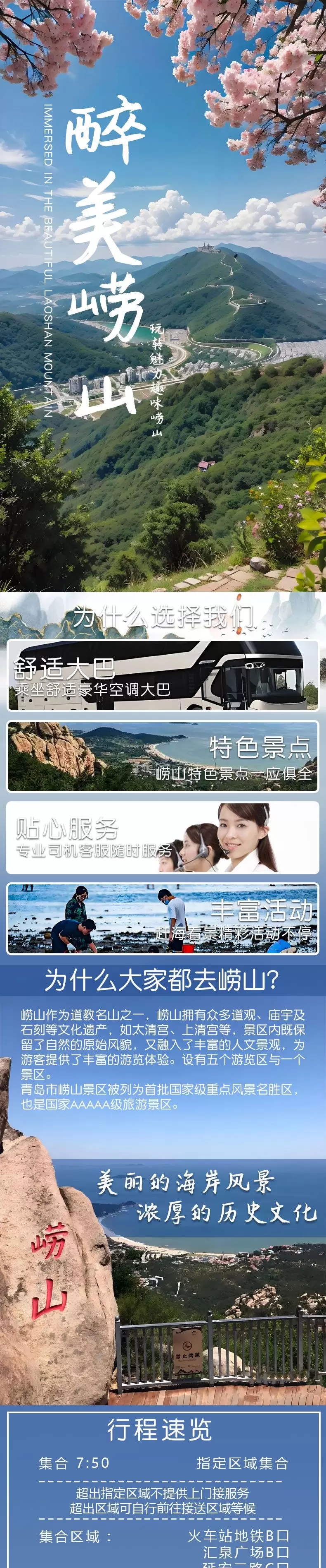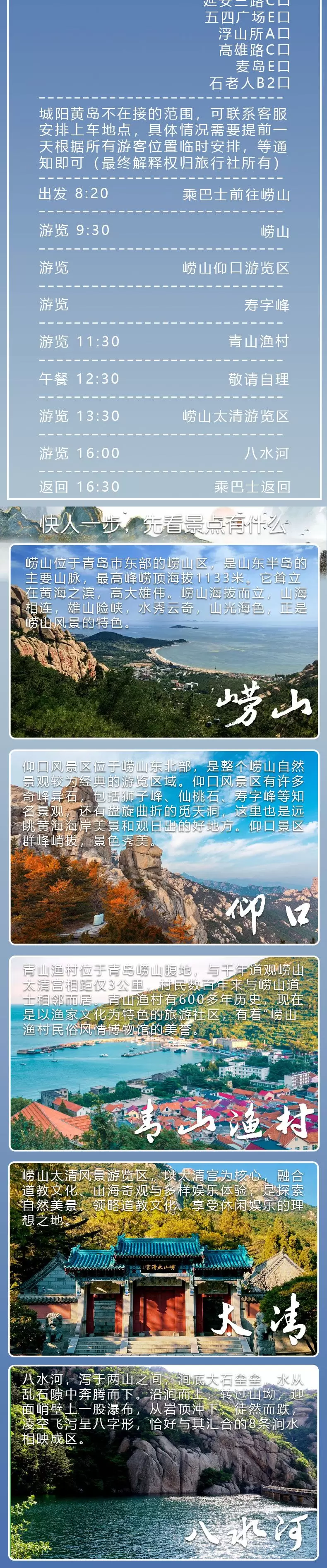 青岛崂山风景区+崂山仰口游览区+崂山太清游览区一日游【含赶海+青山渔村+网红公路+可升级小包团+多套餐可选】